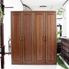 双叶家具 现代简约实木衣柜 大衣柜 实木柜子 胡桃色 四门