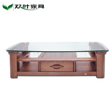 双叶家具双叶实木茶几玻璃面茶几 中式现代客厅桌几可储物玻璃面茶几 胡桃色 (1.5米)